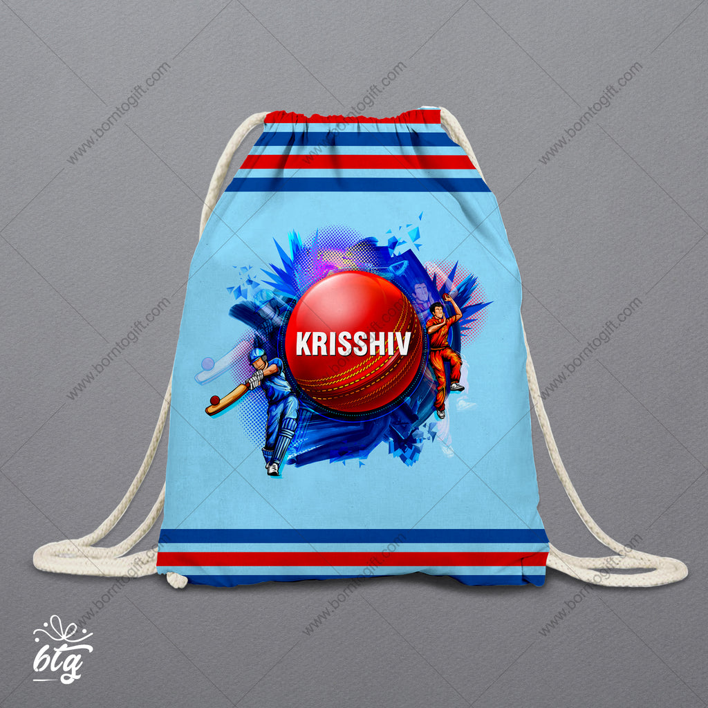 Personalised Drawstring Bag - Cricket